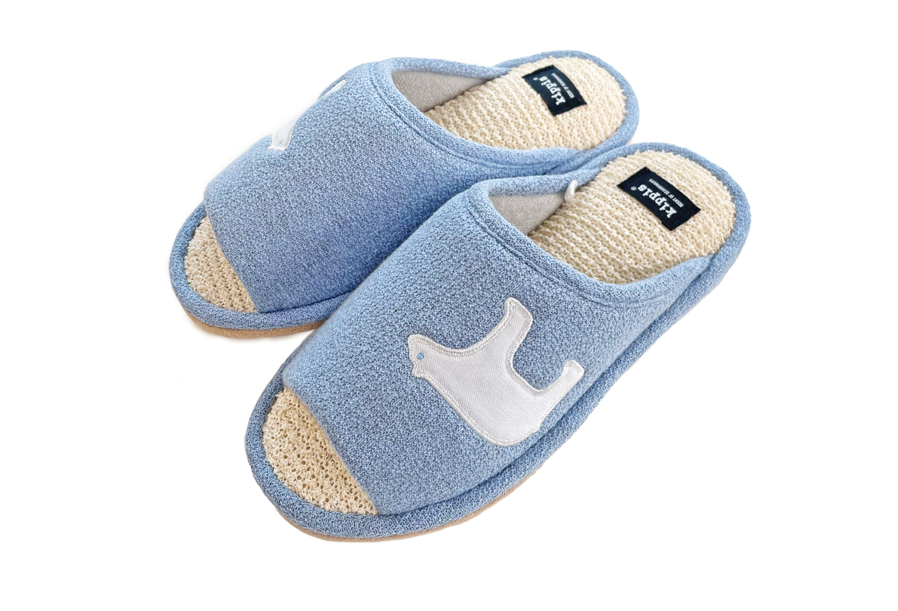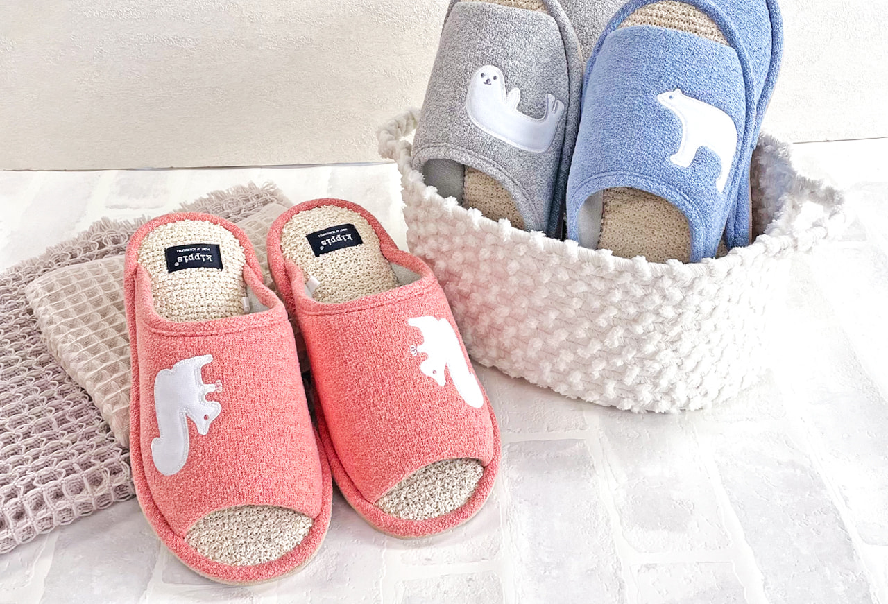 動物のアップリケがポイント。中敷はボディタオルのような爽やかな履き心地。蒸れづらく夏にぴったりのスリッパです。