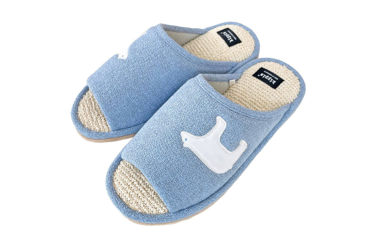 動物のアップリケがポイント。中敷はボディタオルのような爽やかな履き心地。蒸れづらく夏にぴったりのスリッパです。