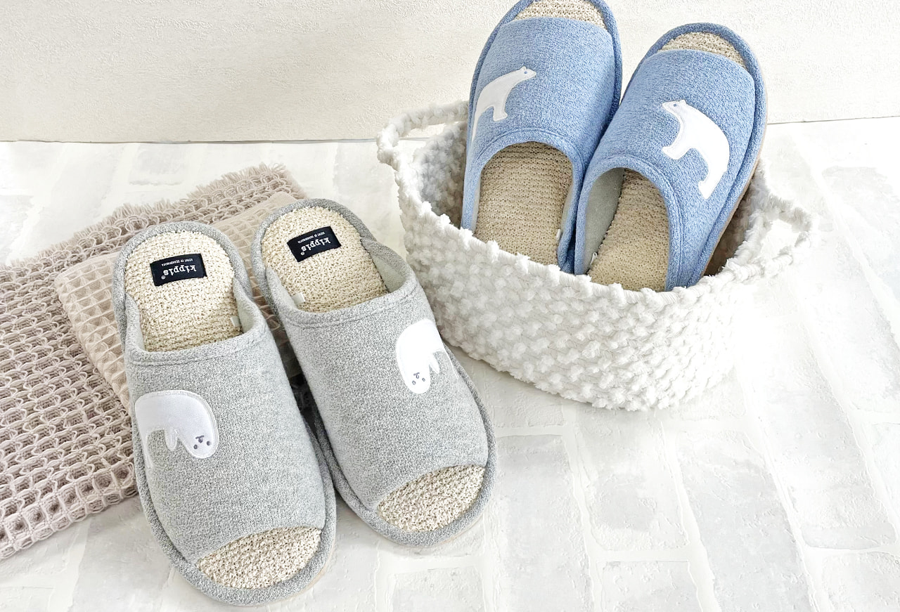 動物のアップリケがポイント。中敷はボディタオルのような爽やかな履き心地。蒸れづらく夏にぴったりのスリッパです。