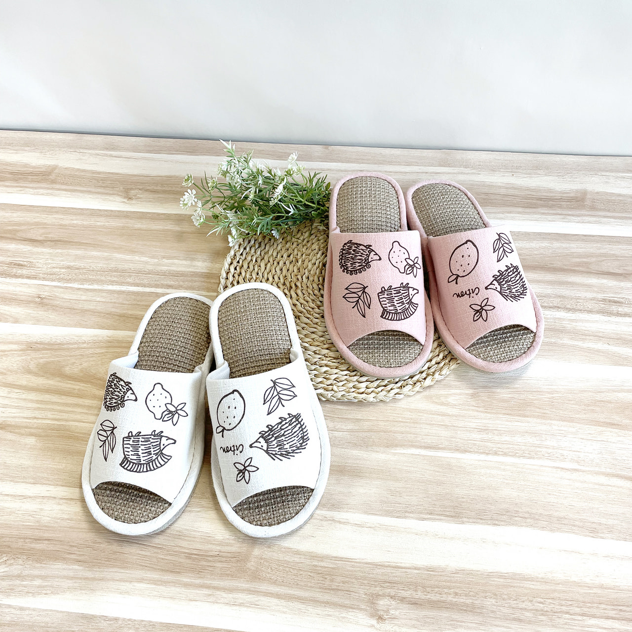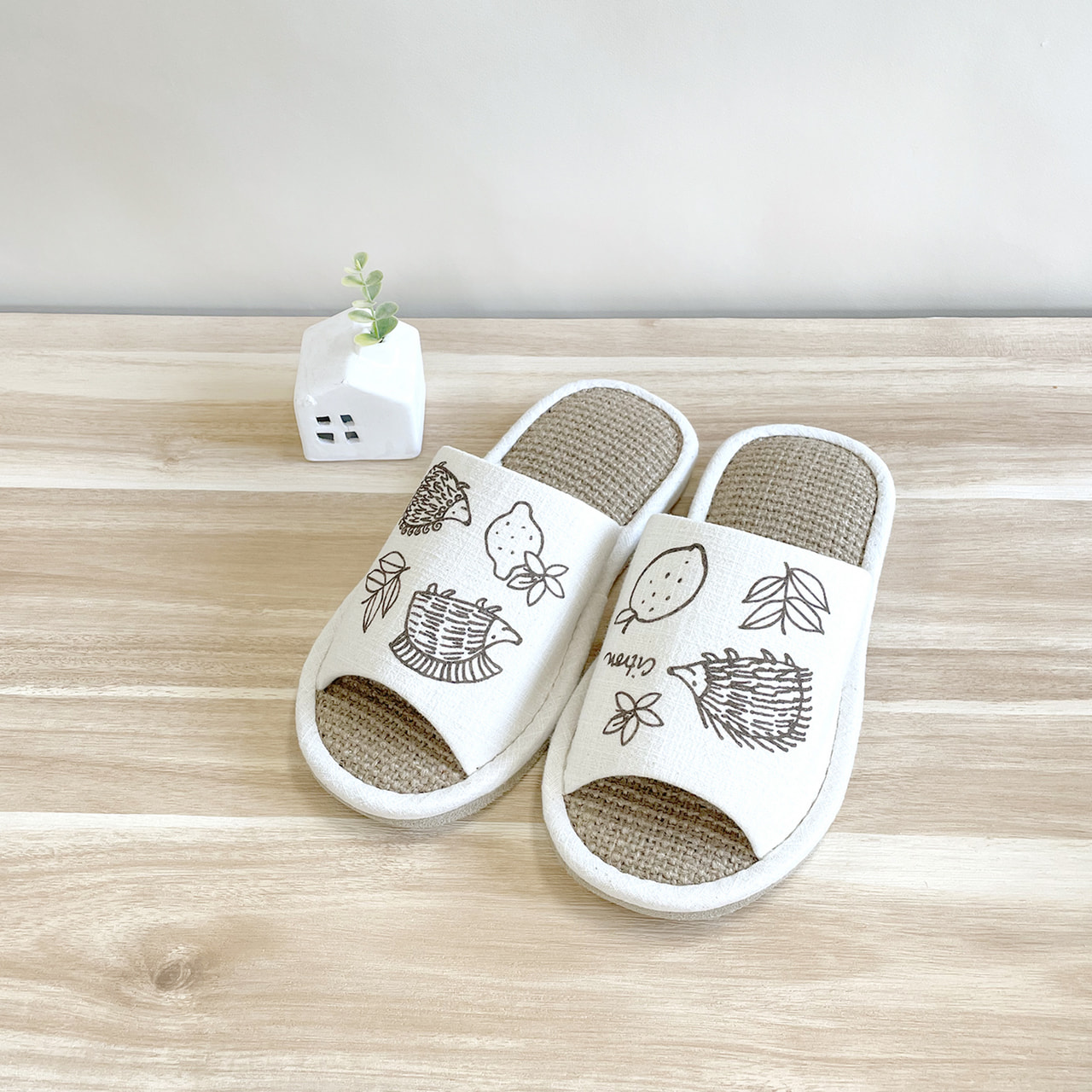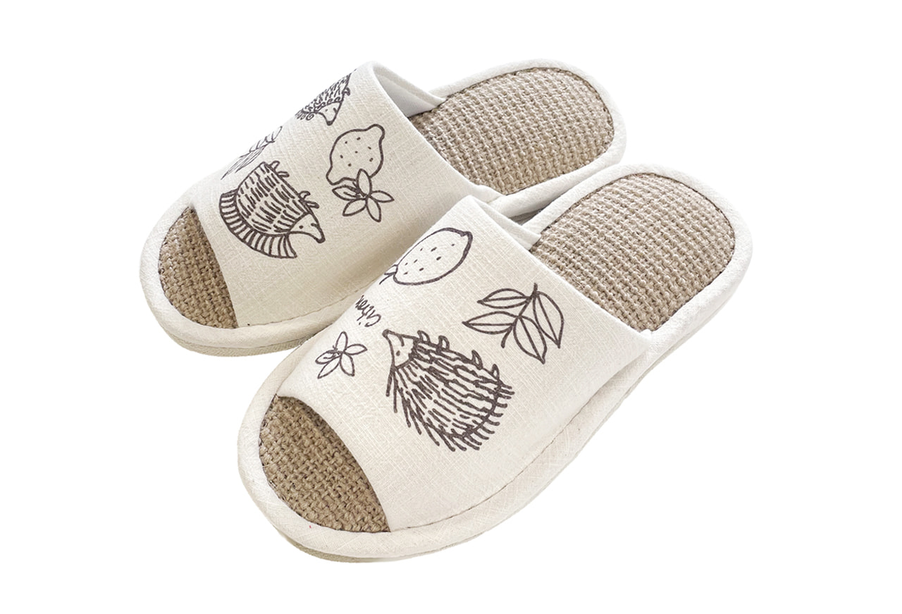 爽やかレモンとはりねずみのプリントスリッパ。
