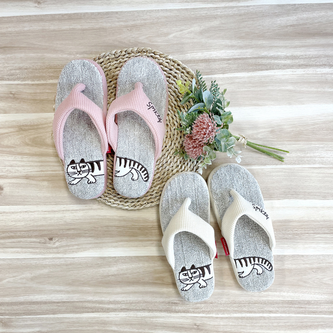鼻緒・へり/綿、ポリエステル、スパン 中敷き:麻、竹繊維、綿 底/ポリスエード(滑り止め付き)