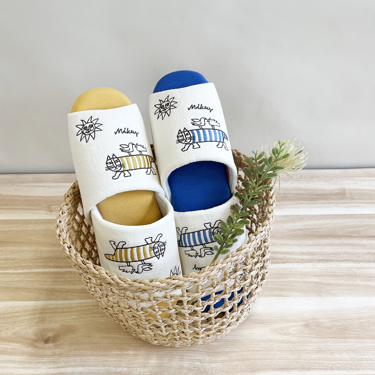 カラフルな色使いで春夏にぴったりな太陽とマイキースリッパ。