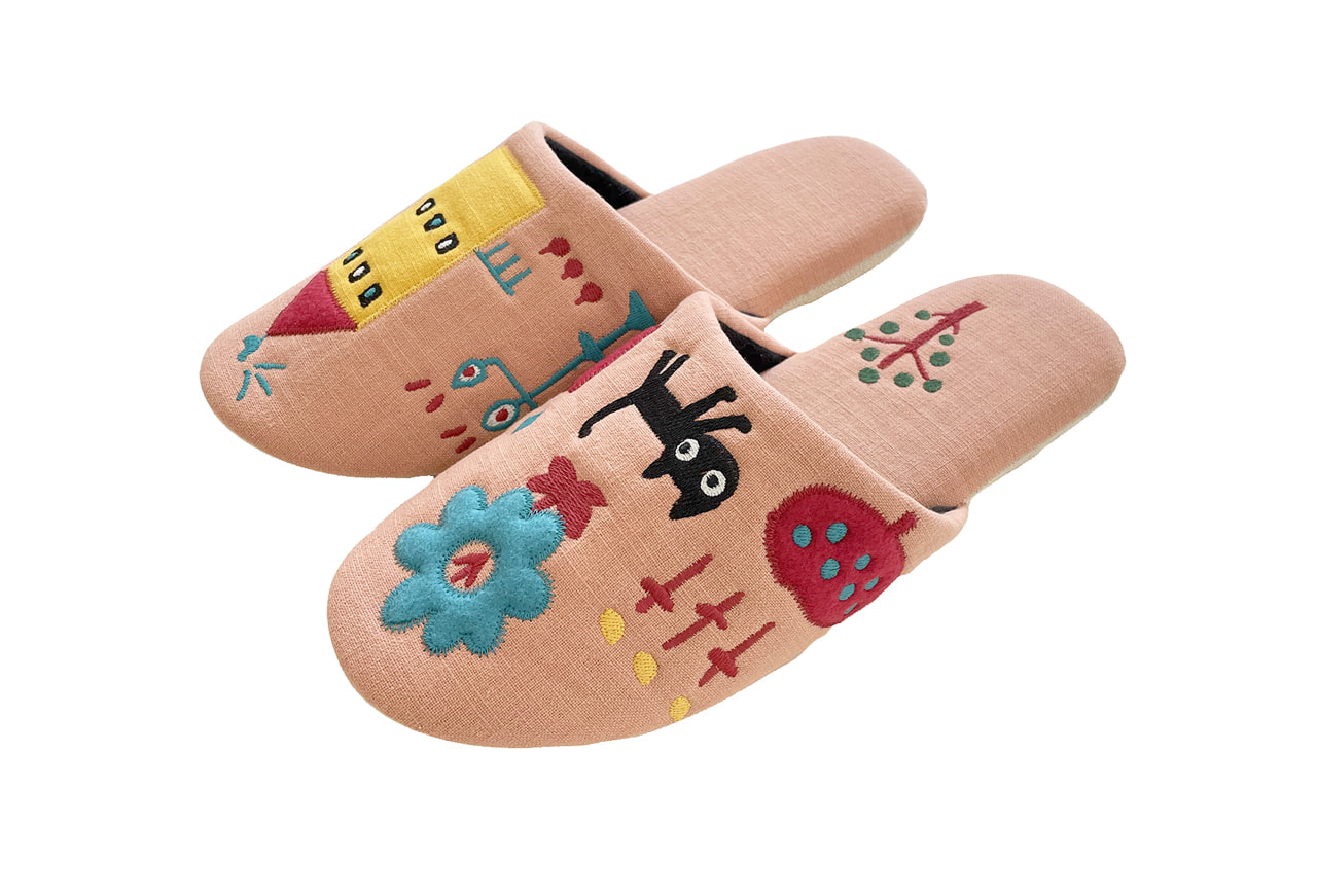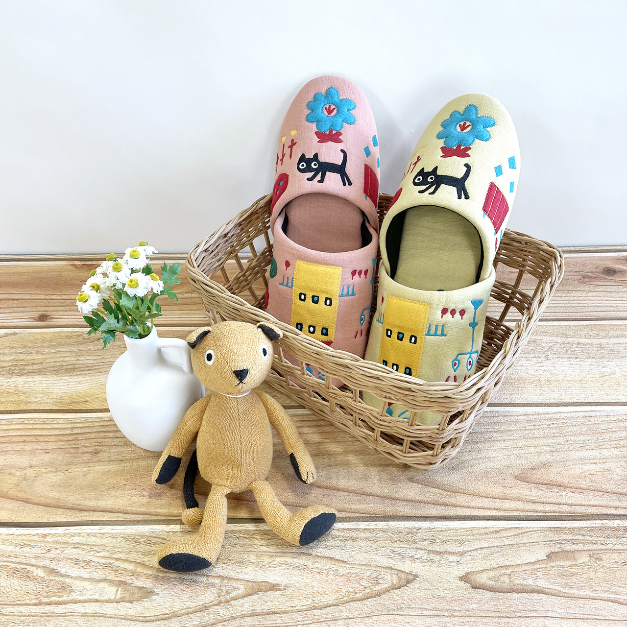 本体/綿 アップリケ/ポリエステル 底/ポリスエード(滑り止め付き)